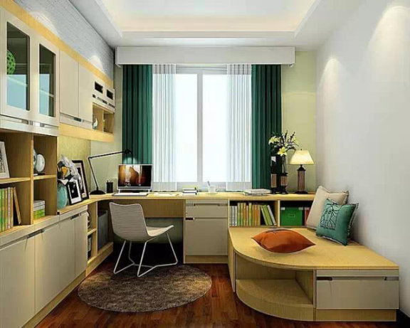 書房,顧名思義就是用來存書,怎能少得了書柜呢?書柜要根據(jù)一家人藏書量的多少來定制,個(gè)人的喜歡的風(fēng)格和顏色來定制。桌子和椅子也是一定要必備,兼會(huì)客用的書房還可以配備沙發(fā)茶幾等。