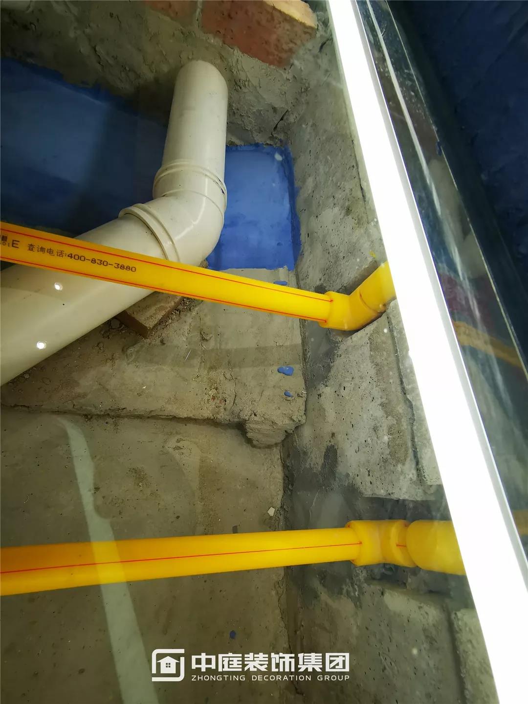 水管翻地梁工藝:進衛(wèi)生間水管翻墻,防止后期瓦工施工踩踏到水管,導致水管震動引起防水開裂,從而導致防水漏水。