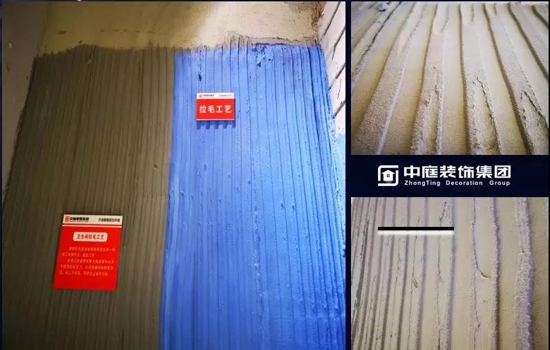 拉毛工藝:墻面拉毛是增加墻面粗糙度的一種施工處理方法,經(jīng)此工藝處理過的墻面能夠大幅度提升水泥與墻面的附著力,從而使墻磚貼得更牢固,長久不脫落,同時防止瓷磚空鼓。