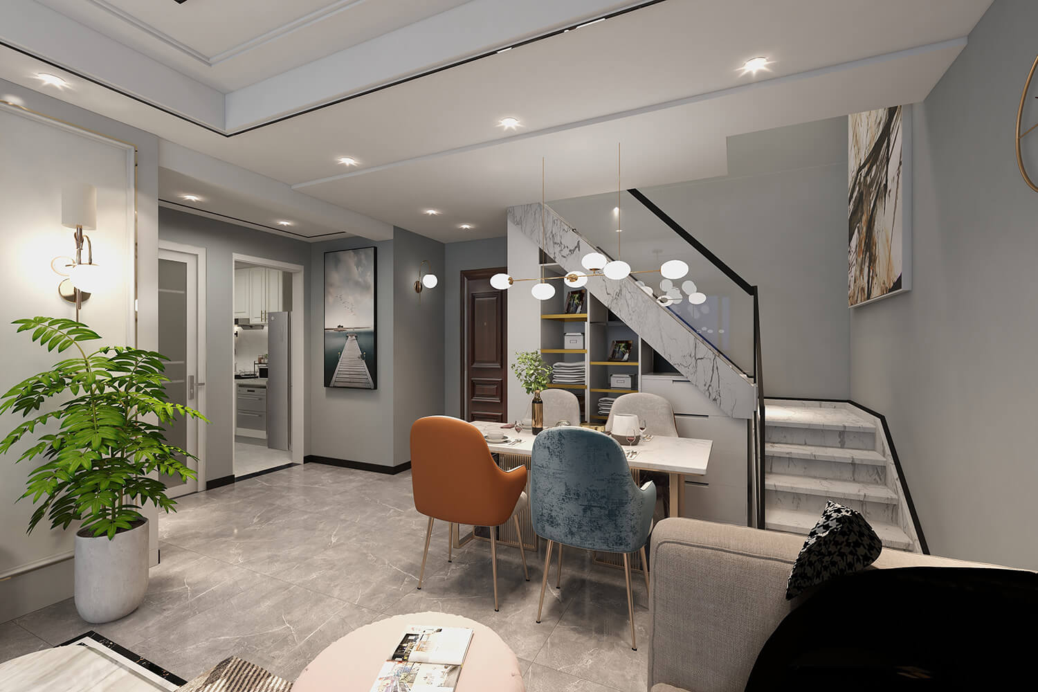 瀏覽量:454客廳比較寬敞,最大限度地利用空間。視覺空間看起來很寬敞,燈光效果也很好。客廳家具方面,采用灰色色調(diào)和金屬元素點綴,營造平靜而不失時尚氛圍。地面用灰色的地磚來裝飾,使整個客廳顯得簡單舒適,顯露出一種奢華感。奢華與金錢或其他一切無關(guān),就像臥室里沒有奢華的裝飾或華麗的裝飾一樣。只有合適的燈光舒適度。一種無負擔(dān)、高質(zhì)量的生活態(tài)度。
